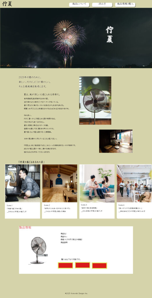 ・涼む=静けさが伴うと感じるため、デザインにおいても多くを語らないことで競合と差別化する(そもそも機能性はアピール材料ではないし)