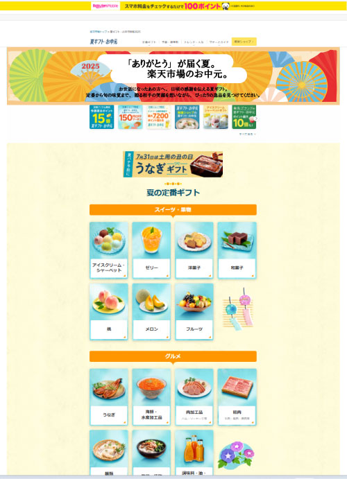 「『楽天市場』の『夏・お中元特集ページ』をイメージして、トップバナーに記載する文言を作って。キャッチコピーとボディコピーをそれぞれお願いします。ボディコピーは2文以内でお願いします。」