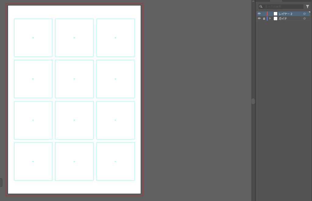 ④「表示>ガイド>ガイドの作成」で作成した図形をガイド線に変更