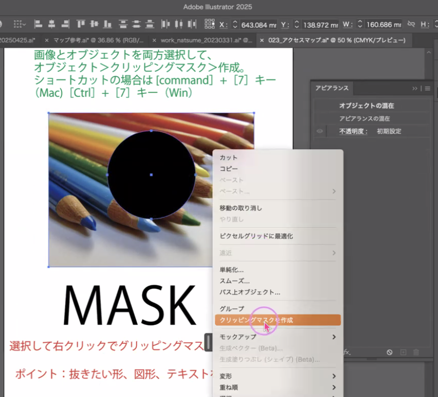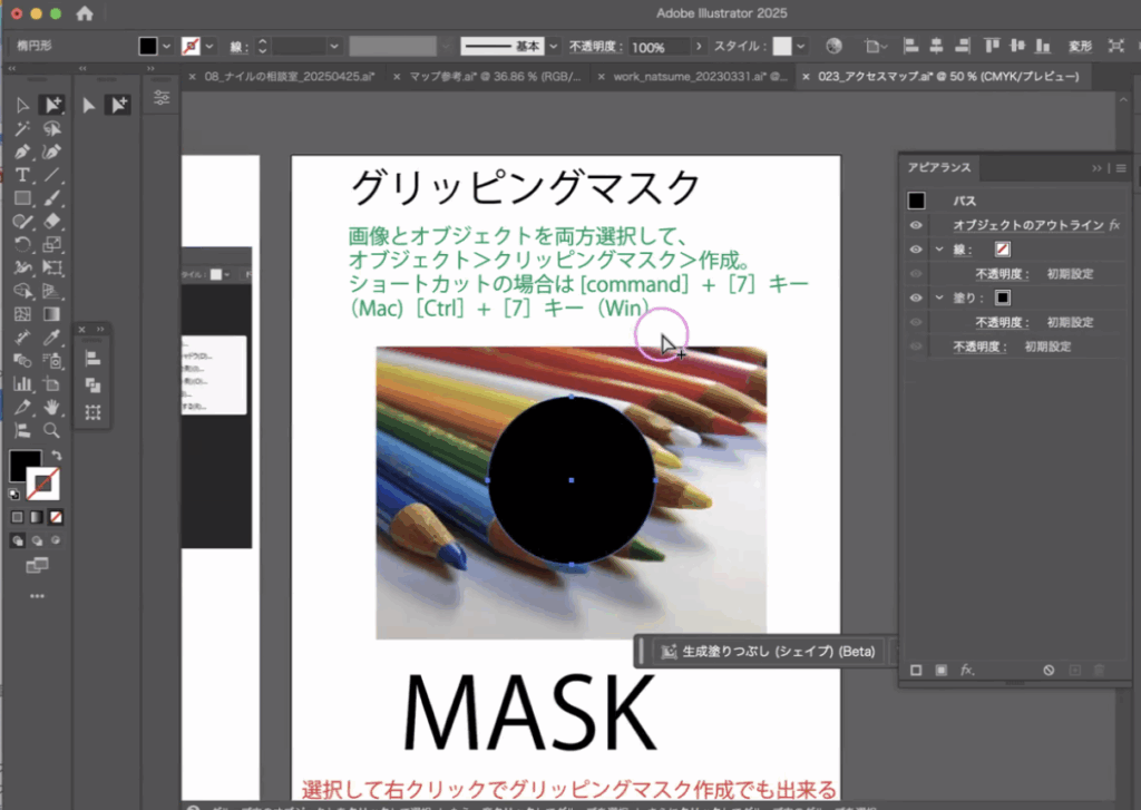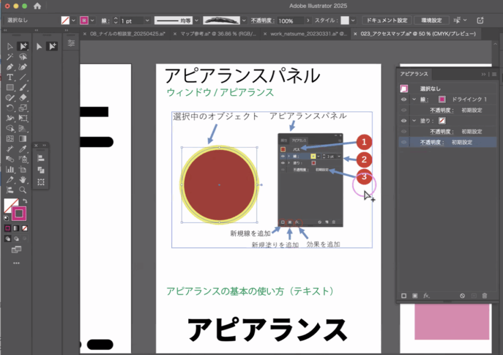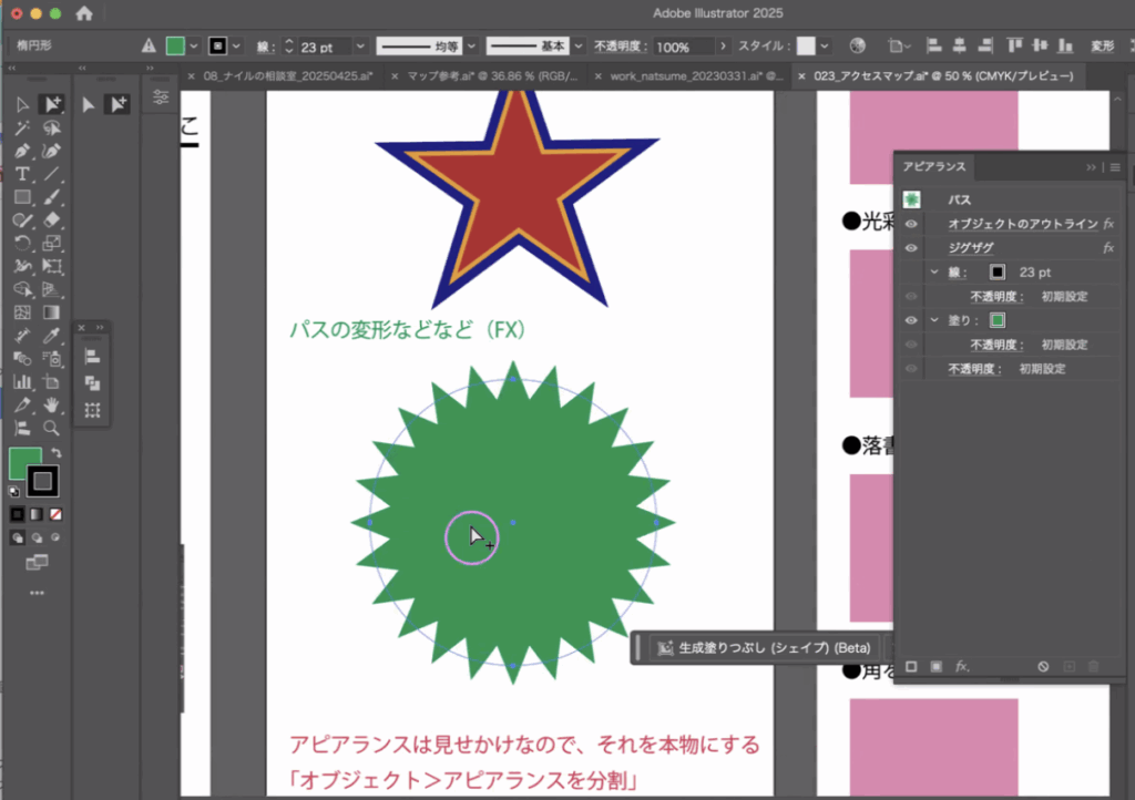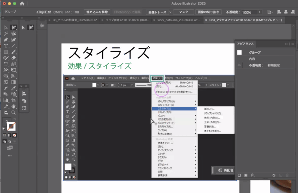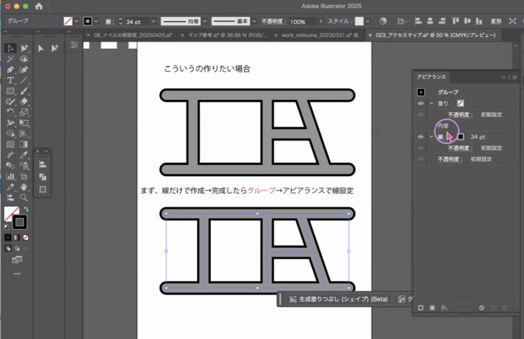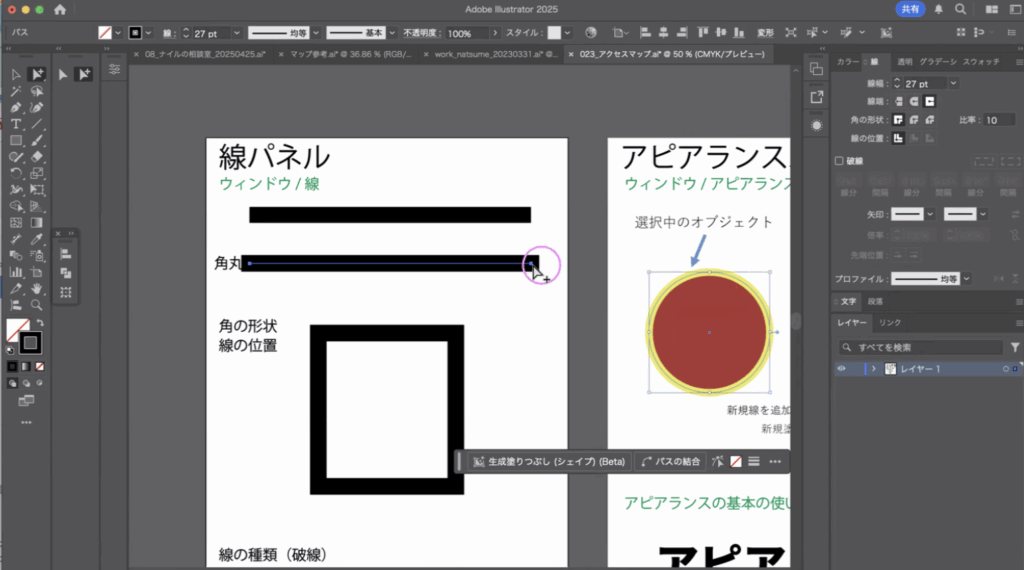 ※アピアランスパネルを出しながら操作すると修正しやすい