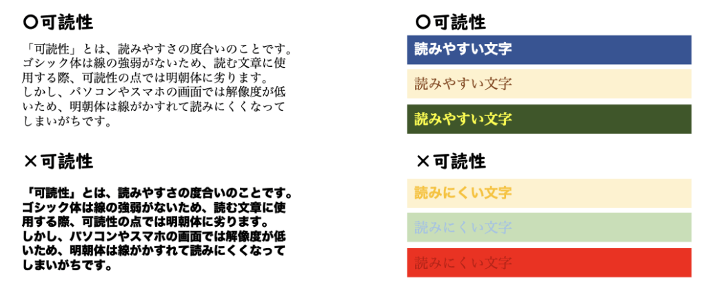 文字や文章の「読みやすさ」は可読性、視認性、判読性という3つの要素から成る。