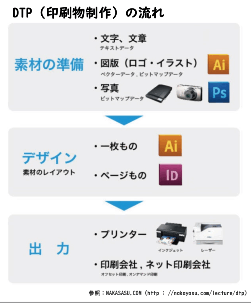 DTP 以前のアナログの印刷物制作の工程がコンピュータの導入により劇的に変化し、それまでの手工業的、職人的な作業が、コンピュータ上に集約することで効率化されていった。