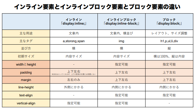 ・ブロックレベル、インライン等の要素の表示形式を指定する際に使用